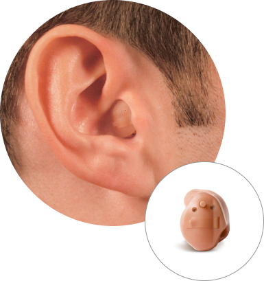 This hearing aid is placed in the ear canal and is the smallest available. It takes advantage of the ear’s natural ability to collect sound, and its discreet size makes the device virtually invisible to others.